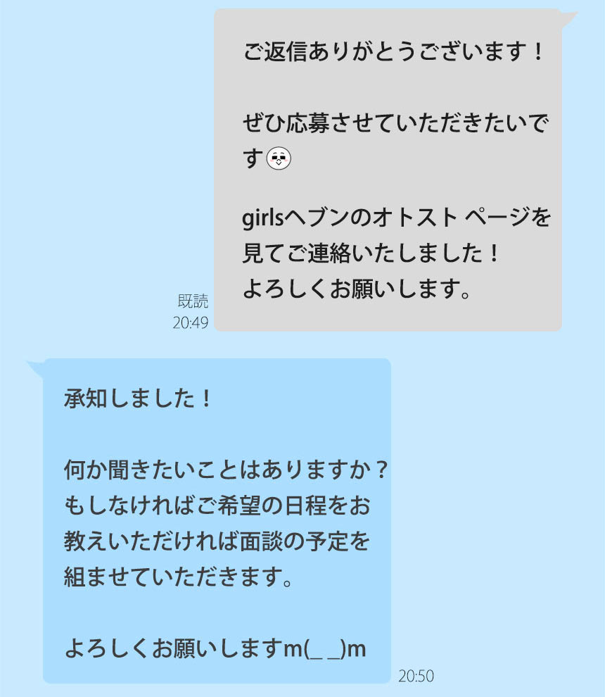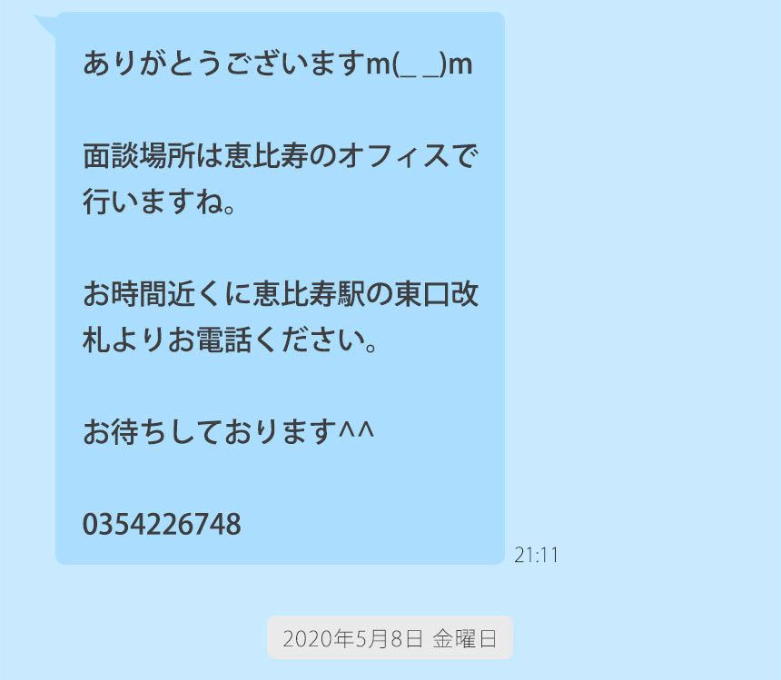 LINEでの面談、直接お会いしてカフェなどでの面談も対応いたしますので、ご希望をお伝えください。