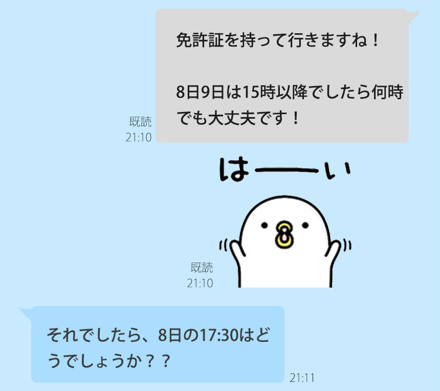 A もちろんLINEでお聞きいただいても大丈夫ですし、お会いいただいた際にでも大丈夫ですよ♪ ご不明な事やご質問は何なりとお聞きください_(._.)_